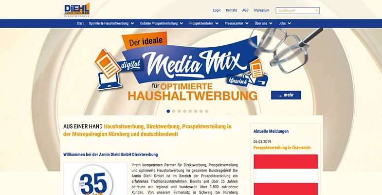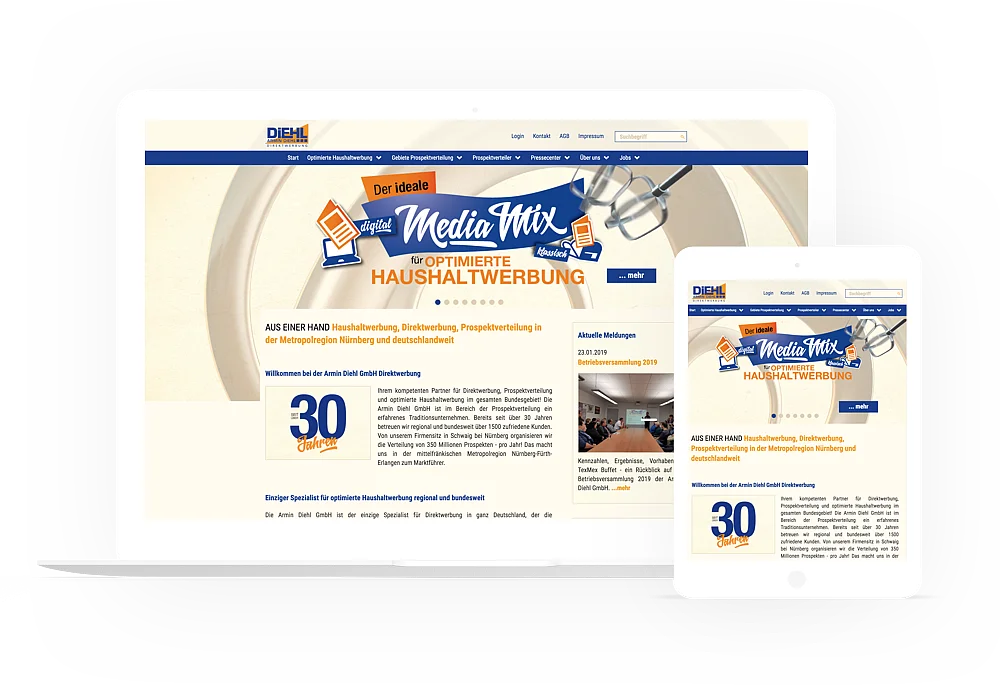Wir haben zahlreiche Extensions eigens für die Anwendung im Backend neu entwickelt, dafür wurde ein strategisches und inhaltliches Konzept der Unternehmenswebseite gestaltet. Da die Armin Diehl GmbH der Erweiterbarkeit des Systems hohe Bedeutung zuschreibt, haben wir uns fürs TYPO3 als besonders geeignetes Content Management System entschieden. Die von uns entwickelten Extensions wurden in den Aufbau des CMS integriert, sodass die einfache Bedienbarkeit und Pflege über das Backend gewährleistet sind.
