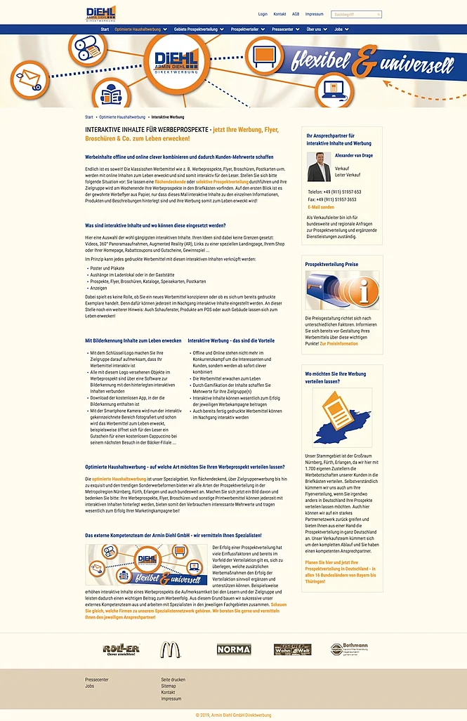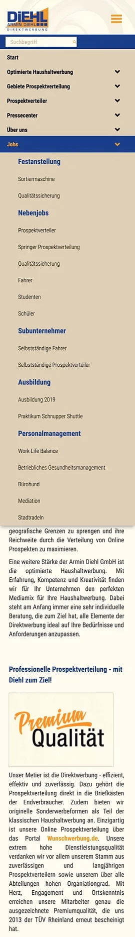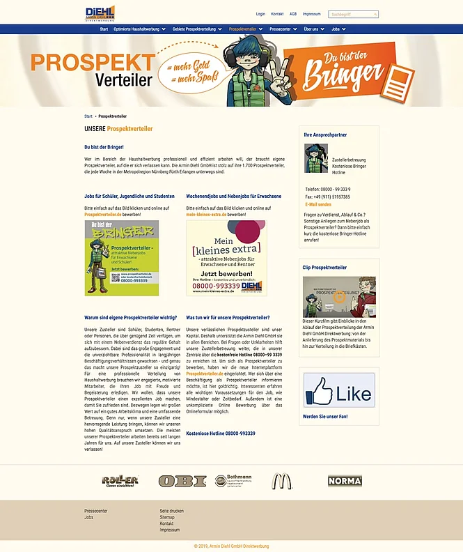 Darüber hinaus wurden zwei Landingpages gestaltet und programmiert. Diese sollen die Aufmerksamkeit grundverschiedener Zielgruppen ansprechen können: die der Schüler und die der Senioren. Zusätzlich wird regelmäßig Wissen rund um das Thema Prospektverteilung dargestellt. Die Jobangebote können auch in der Mobileansicht barrierefrei aufgerufen werden, damit Bewerber sich online bewerben können.