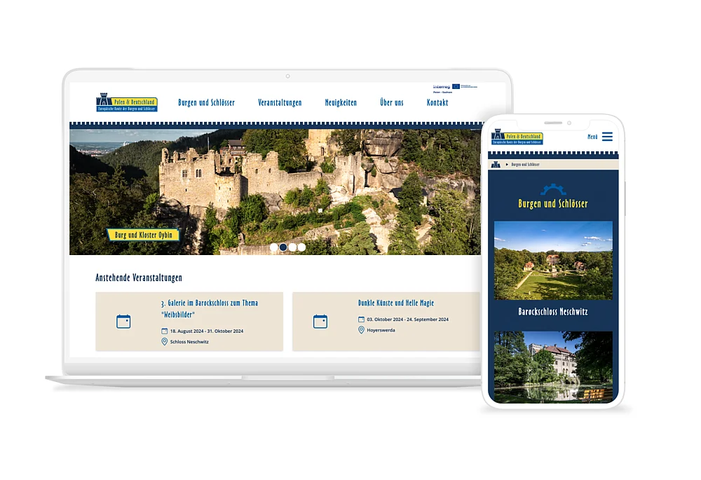 Im Rahmen des Projekts „Burgen und Schlösser verbinden uns Polen - Sachsen“ haben wir die technische Umsetzung der neuen Website für das Landesprojekt erfolgreich realisiert. Die Website wurde auf Basis des bestehenden Layouts des polnisch-tschechischen Partnerprojekts entwickelt. Besonderer Wert wurde dabei auf eine moderne, inspirierende Gestaltung gelegt, bei der visuelle Inhalte wie Bilder und Videos im Mittelpunkt stehen.
