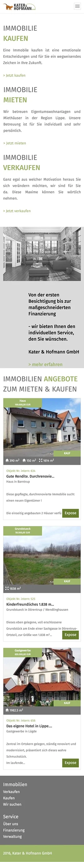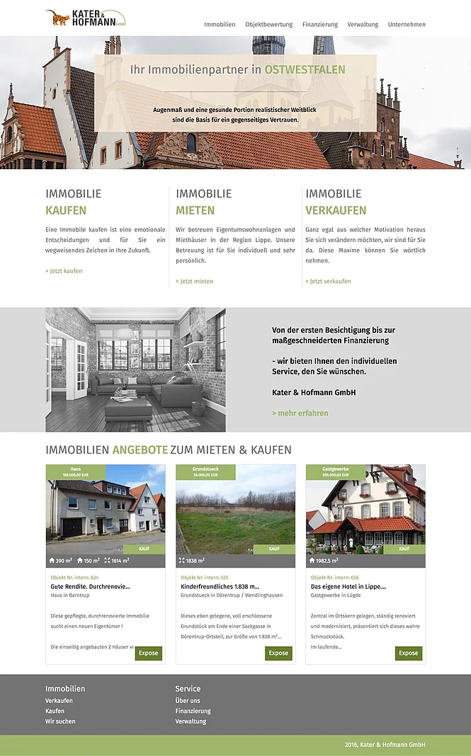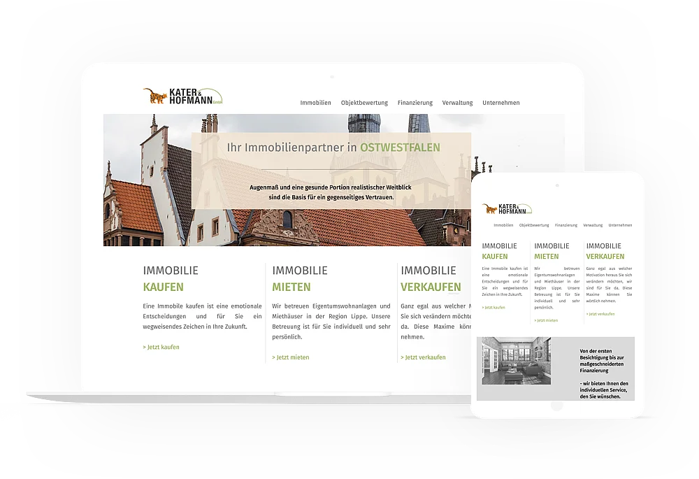 Erstellung einer Internetseite für Immobilienmakler mit einer suchmaschinenoptimierten Programmierung in TYPO3. Implementierung einer Immobiliendatenbank zu der mittels Maklersoftware die Daten für die Exposes übertragen werden können. Die Immobiliendaten werden mittels Programmierung in spezielle Inhaltsseiten umgewandelt, die wiederum vollautomatisch für Suchmaschinen zur Indexierung aufbereitet werden.