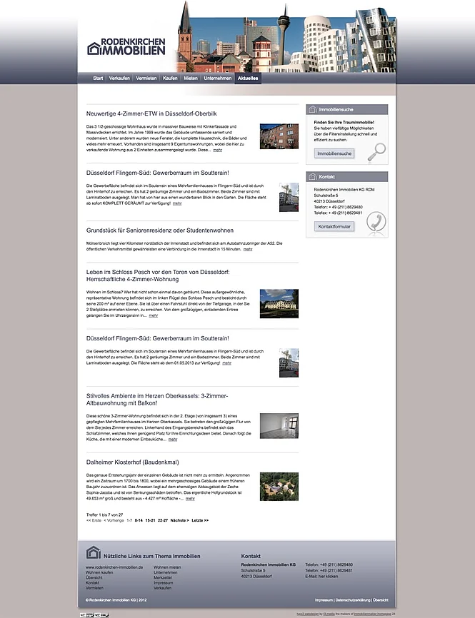 Erstellung einer Webseite für Immobilienmakler mit einer suchmaschinenoptimierten Programmierung in TYPO3. Implementierung einer Immobiliendatenbank zu der mittels Maklersoftware die Daten für die Exposes übertragen werden können. Die Immobiliendaten werden mittels Programmierung in spezielle Inhaltsseiten umgewandelt, die wiederum vollautomatisch für Suchmaschinen zur Indexierung aufbereitet werden.