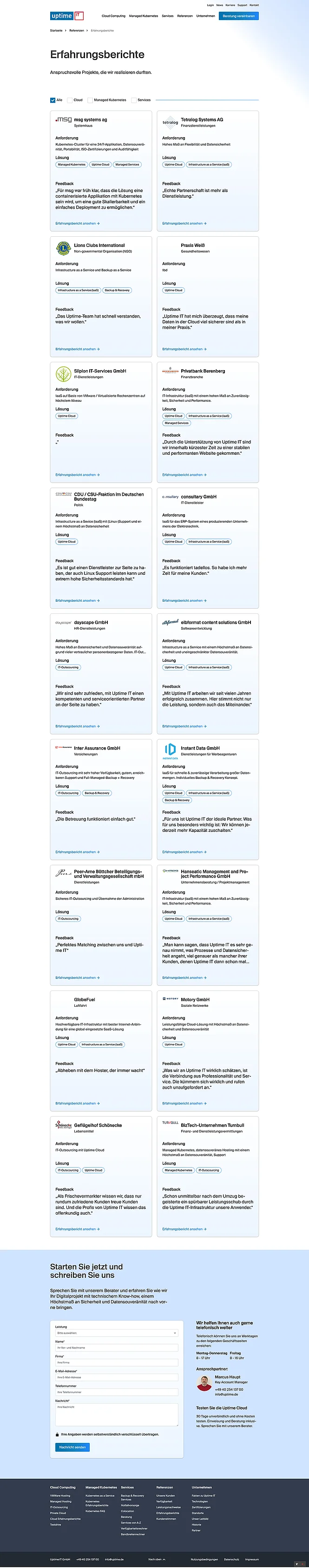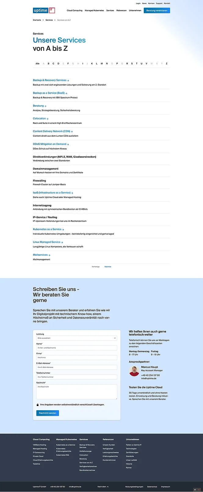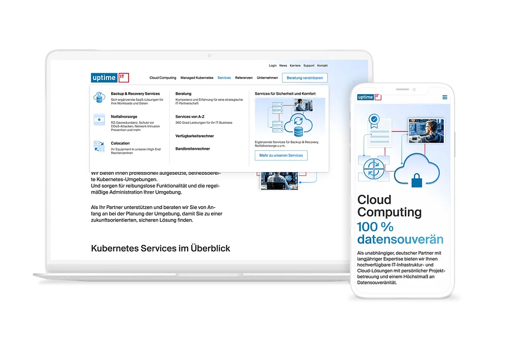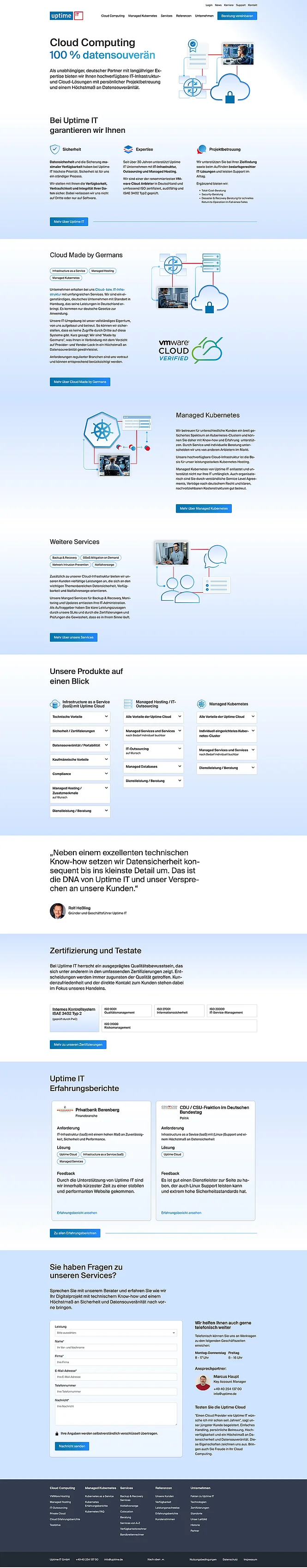 Das Endergebnis ist eine Webseite, die nicht nur durch ein frisches und modernes Design besticht, sondern auch die Kernkompetenzen und den Fokus von Uptime IT auf Cloud-Infrastruktur effektiv vermittelt. Sie dient nun als repräsentatives Aushängeschild des Unternehmens, das seine Werte und sein Engagement für Qualität und Kundenservice eindrucksvoll zur Schau stellt.