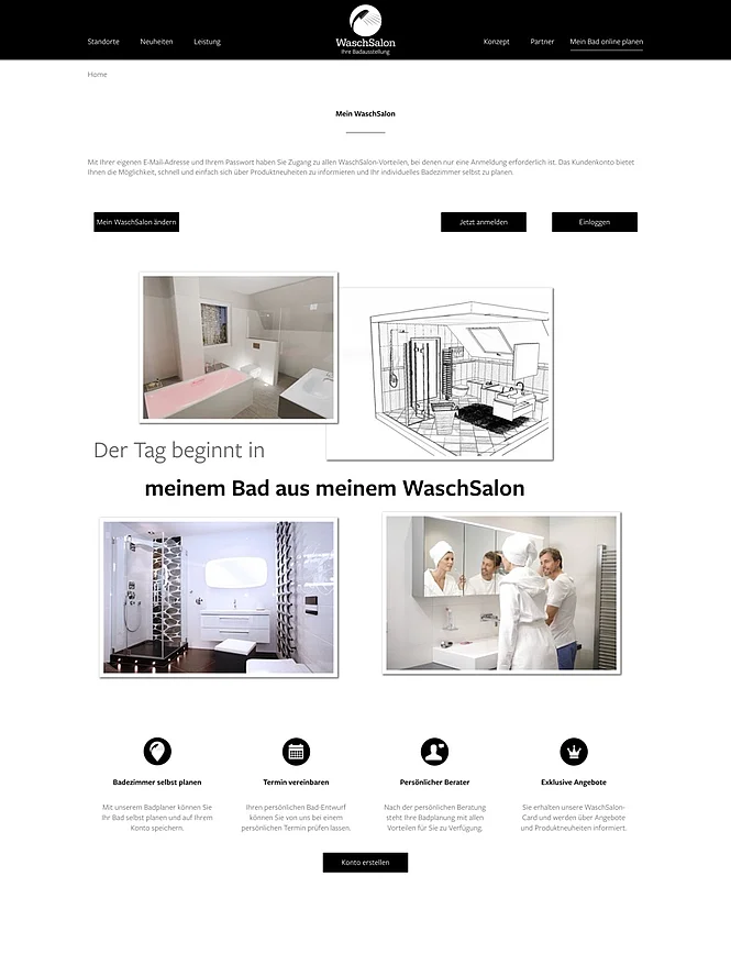 Es wird ein personalisierter Login-Bereich integriert. Der Interessent kann über ein externes Plugin eine Badplanung durchführen. Allerdings kann er diese Daten nur speichern wenn er ein persönliches Profil erstellt. Mit diesem Profil kann der Interessent auch ein Beratungsgespräch an einem der ca. 10 Standorte des Unternehmens vereinbaren. Ein Termin bedarf eines bestimmten Prozessablaufes, da der Ansprechpartner im Waschsalon per E-Mail über die Anfrage informiert wird. Die Termindaten müssen in der Webapplikation bestätigt werden. Andernfalls erhält der Interessent keine Bestätigung. Die Vorgesetzten der Berater erhalten einen Zugang für das Controlling Ihrer Mitarbeiter. Die Webapplikation beinhaltet derzeit 4 Domain Models mit ca. 10 Subdomain Models mit insgesamt derzeit ca. 150 Datenbankfeldern.